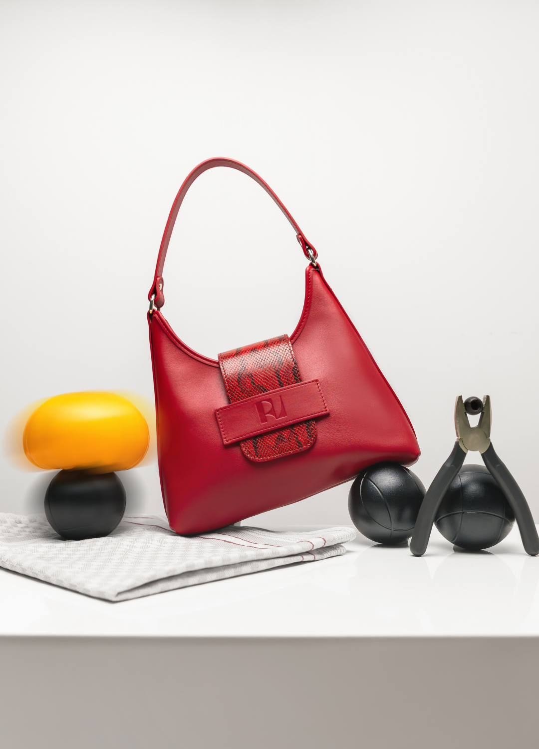 Ce FADA conjugue passion et caractère. Le cuir rouge intense s’associe aux écailles de python pour créer un jeu de matières flamboyant. Une pièce unique, magnétique, qui attire tous les regards et affirme une personnalité forte.
